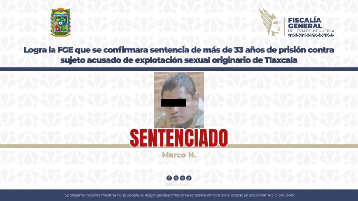 Con base en los argumentos presentados por la Fiscalía General del Estado, se logró que la autoridad judicial confirmara la sentencia de más de 33 años de prisión contra Marco N., originario del estado de Tlaxcala, acusado de trata de personas en su modalidad de explotación sexual por prostitución ajena.