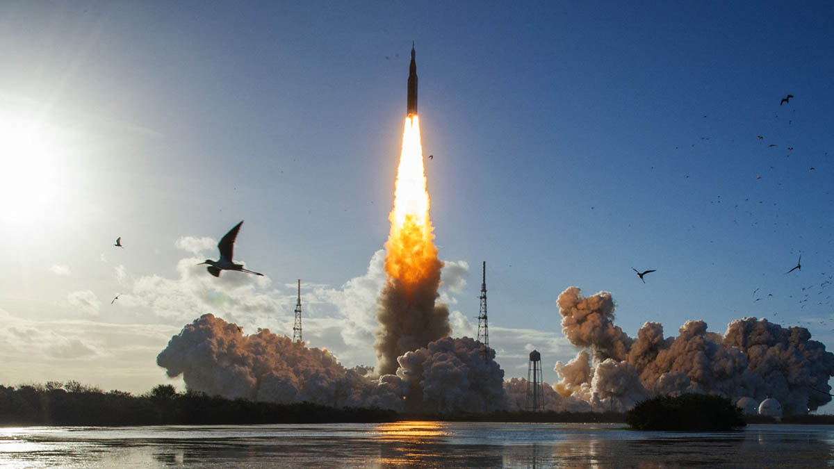 El cohete del Sistema de Lanzamiento Espacial (SLS) de la NASA, coronado por su cápsula tripulada Orión, rugió justo antes del atardecer en el Centro Espacial Kennedy de la agencia, en Cabo Cañaveral (Florida), llevando a su tripulación inaugural —tres astronautas estadounidenses y uno canadiense— a la órbita terrestre. El vehículo espacial, de 32 pisos de altura, se elevó con estruendo hacia el cielo despejado, dejando tras de sí una